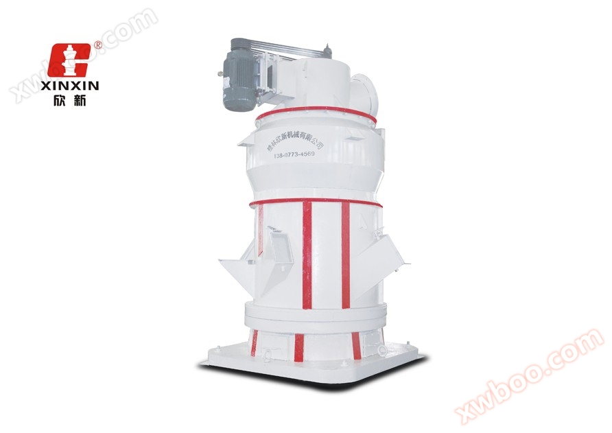 The material is crushed into pieces smaller than 10mm by a crusher, and then sent to the storage hopper by a bucket elevator. It is then quantitatively fed into the main machine for grinding by a belt feeder. The four grinding roller devices suspended on the plum blossom frame inside the host chamber rotate around the central axis, and the grinding rollers swing outward under the action of centrifugal force, thereby pressing the grinding ring tightly, and the grinding rollers simultaneously rotate around the grinding roller axis. The material lifted by the rotating shovel is thrown between the grinding roller and the grinding ring, and is crushed and ground by the rolling of the grinding roller.At the same time, the high-pressure and high flow airflow generated by the open circuit high-pressure induced draft fan induced draft system mixes with the crushed powder to form a high concentration airflow, which enters the classifier at the upper part of the main engine for sorting.Those that are too fine or too coarse still fall into the main machine for re grinding, while those that meet the specifications enter the pulse collection system with the airflow. After collection, they are discharged through the discharge pipe to obtain the finished product. The purified airflow flows into the blower through the pipeline at the upper end of the pulse collection system. The air duct is open, and except for the blower, the airflow in all other pipelines flows under negative pressure, ensuring good hygiene conditions in the workshop.