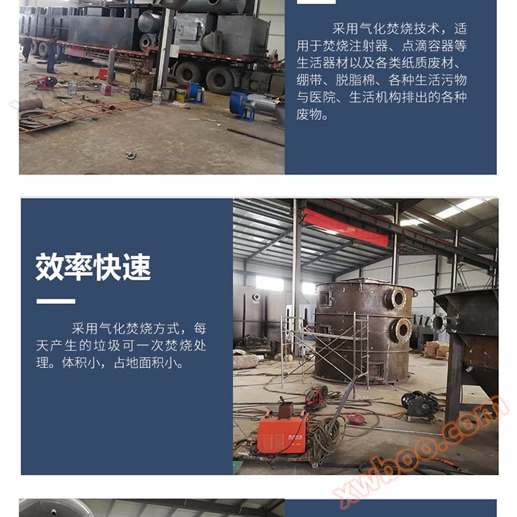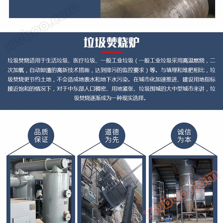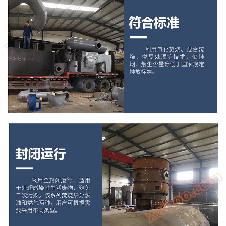 Our incinerator series products have a wide range of incineration range and good effect, achieving the goals of "harmless", "no quantification", and "stabilization" of waste treatment, as well as the three no standards of "no black smoke", "no odor", and "no dust". It is equipment for processing waste in schools, military units, hotels, slaughterhouses, breeding farms, animal husbandry farms, zoos, laboratories, and other places.