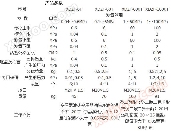 Purpose: Mainly used for verifying piston pressure gauges and calibrating piston area. It can also be used as a piston pressure gauge to calibrate pressure sensors, pressure transmitters, digital pressure gauges, and other precision pressure instruments. It can also be used to calibrate mercury pressure gauges, various non corrosive industrial pressure gauges, or other precision pressure measuring instruments.