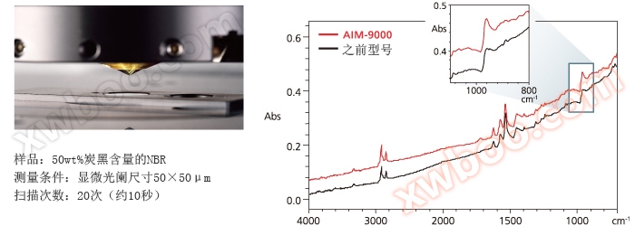 AIM-9000 has been optimized specifically for measuring extremely small samples. The signal-to-noise ratio of AIM-9000 can reach 30000:1, which is better for the same level. Correspondingly, high-quality spectra can also be quickly obtained for very small foreign objects.